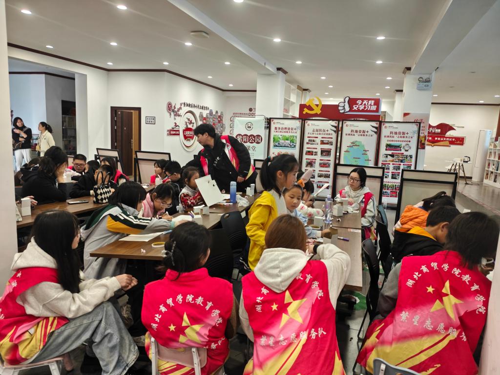 手工樱花风铃制作成为本次活动的重头戏。志愿者们准备了玻璃风铃、卡纸、双面胶、水彩笔等材料,手把手教孩子们制作属于自己的樱花风铃。折叠、剪裁、粘贴……每一个步骤都凝聚着专注与创意。在志愿者的协助下,一朵朵粉色的樱花在孩子们手中次第“绽放”,不一会儿,玻璃风铃上便开满了春意。轻轻晃动,风铃发出清脆悦耳的声响。孩子们捧着自己的作品,脸上洋溢着自豪与喜悦,不少家长也参与其中,与孩子共同完成这份春日礼物。
