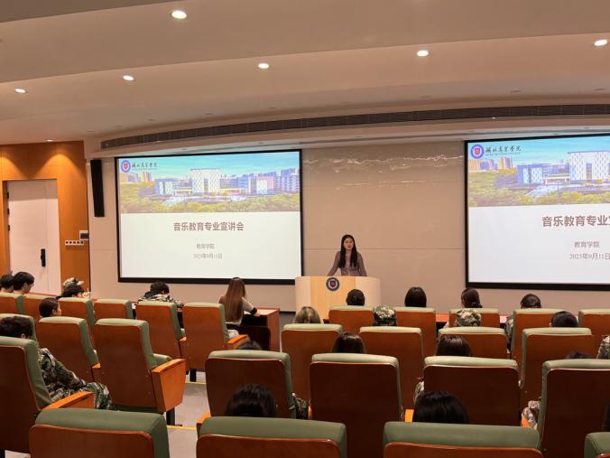 9月25日,音乐教育专业在鸿博楼J1学术报告厅举办2025-2026学年新生专业宣讲会。会议由湖北商贸学院校长助理、校团委书记、音乐教育教研室主任陈雪芬主持,教师代表及全体音教专业大一学生参加。