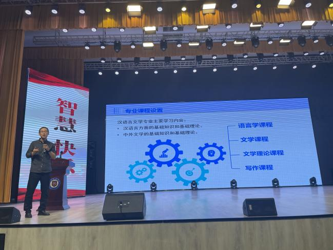 9月25日,教育学院副院长、汉语言文学教研室主任金敏在咸宁校区大礼堂为2025级汉语言文学专业新生作专业介绍。金敏从专业概况、课程结构、师资配置以及就业前景等多个维度展开讲解,帮助新生全面认知专业特色与发展潜力,为今后的学业规划与职业选择提供了明确指导。