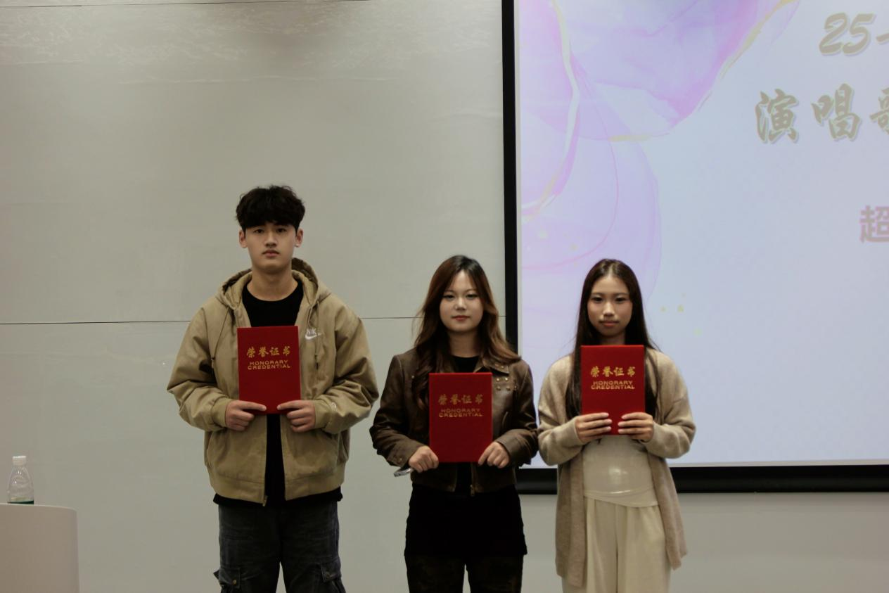 歌声传递梦想,旋律点亮青春。本次“超级‘新’声”歌手大赛院赛,不仅为教育学院学子搭建了展现自我的舞台,更以音乐为纽带,为青春记忆添上浓墨重彩的一笔。选手们在舞台上展现的积极向上、勇于表达的精神风貌,为校园文化注入了蓬勃活力。最终,大赛决出前三名并为其颁发证书,以表彰他们在舞台上的精彩表现。期待晋级选手在后续赛事中继续绽放光彩,用歌声书写更多教院学子的青春华章!