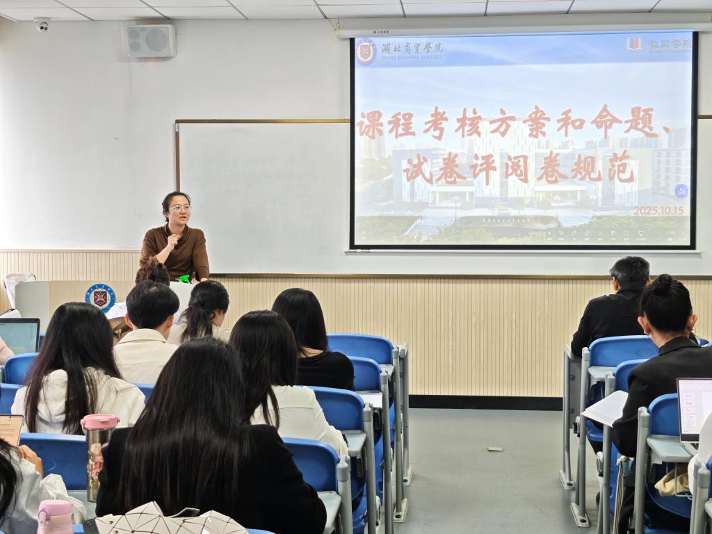 培训会上,于莹首先强调了规范课程考核与命题工作对于保障教学质量、促进公平评价的重要意义。她系统梳理并详细解读了学校及学院关于课程考核方案制定、命题原则、试卷格式、评阅标准以及归档要求等方面的具体规范,明确了各环节的操作要点与质量标准。