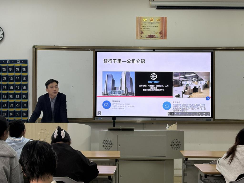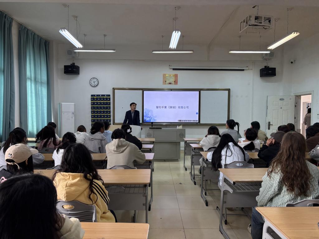 10月28日下午,智行千里(深圳)有限公司针对教育学院毕业生举办专场宣讲会。 于咸宁校区XJB-103教室举行。本次宣讲会精准对接学前教育、小学教育等专业人才需求,为 2026 届毕业生搭建高效就业沟通桥梁,吸引众多学子到场。
