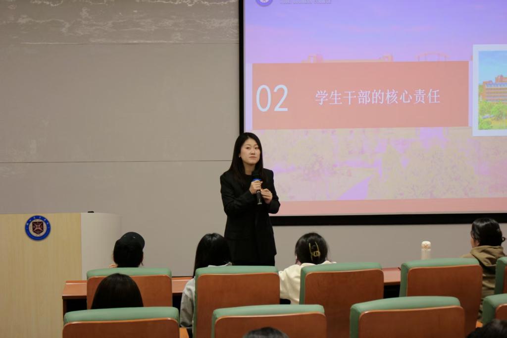 王珉以“骨干领航聚合力,担当作为启新篇”为主线,围绕学生干部的角色定位、成长路径、能力要求与管理艺术展开了系统阐述。