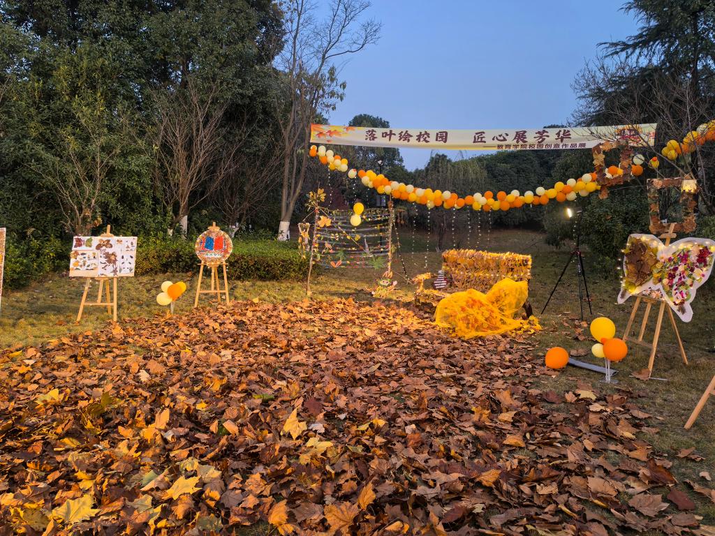 为让师生在冬日校园中邂逅自然之美与人文创意的碰撞,12月8日至9日,湖北商贸学院教育学院在校内草地上倾情呈现“落叶绘校园 匠心展芳华”校园创意作品展。各学院学子踊跃参与、巧思迸发,多件优秀佳作脱颖而出,在自然景致环抱的展区中精彩亮相,为校园文化生活增添了浓墨重彩的一笔。