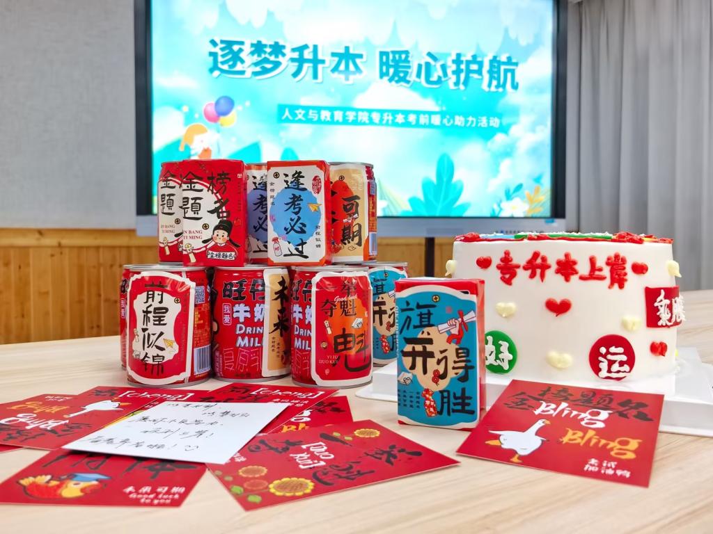 此次“逐梦升本,暖心护航”系列活动,是湖北商贸学院人文与教育学院关爱学生、服务学生的生动体现。从咸宁校区的“上岸”饮料、“考试加油”蛋糕、祝福贺卡,到武汉校区的定制励志签字笔、“定心丸”薄荷糖及签名留念,每一件礼物、每一个环节都凝聚着学院对学子们的深情厚谊。