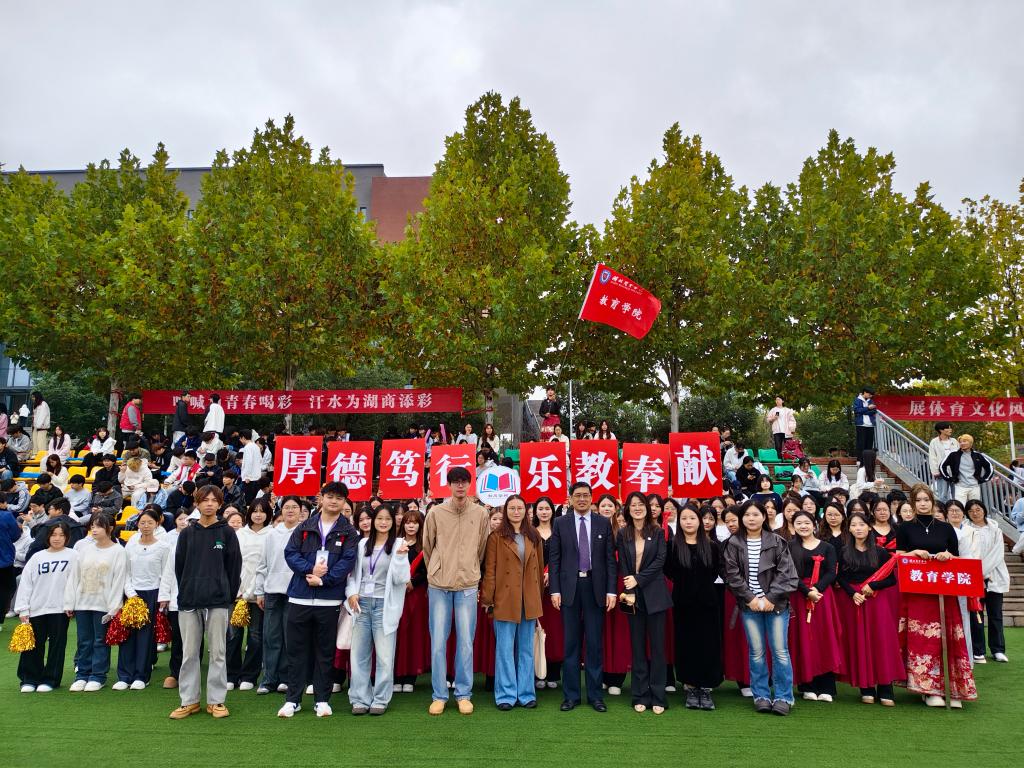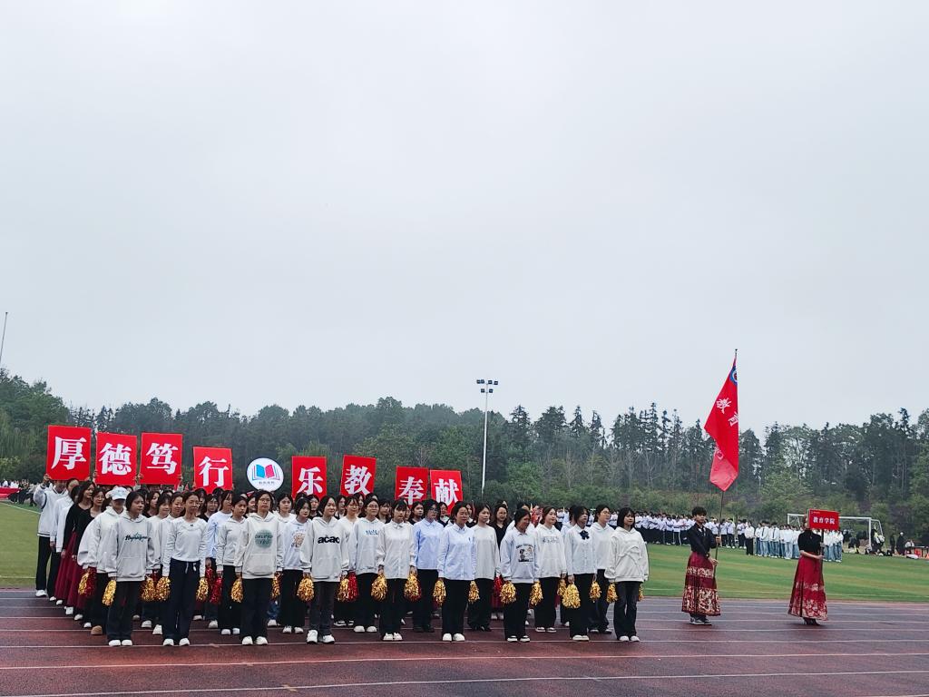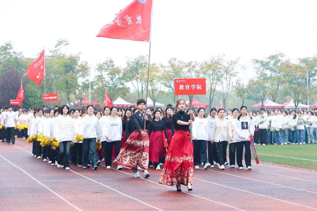 “厚德笃行,乐教奉献;向阳奔跑,逐梦赛场!” 嘹亮的口号响彻赛场,既彰显着教育学院师生深耕教育、践行奉献的信念,又传递出征战赛场的昂扬斗志。此次方阵展演不仅锻炼了学子们的团队协作与组织能力,更将教育理念与传统文化融为一体,展现出教育学院学子全面的素养与担当。
